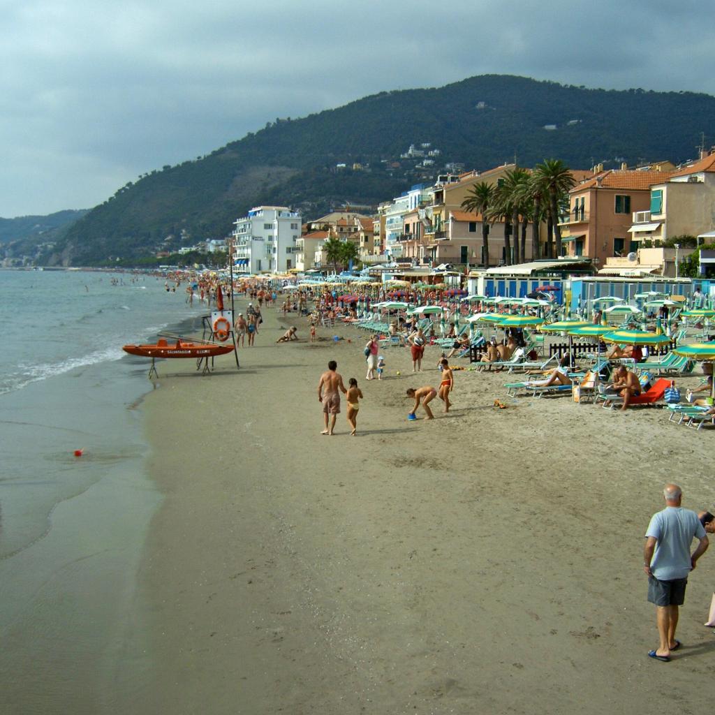Обои Летний отдых на пляже на курорте Алассио, Италия