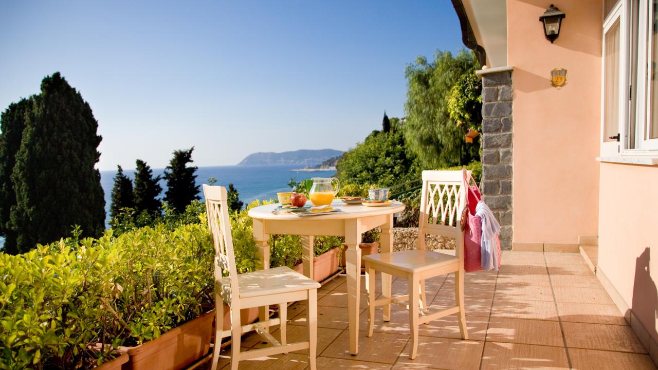 Обои Дом с видом на море на курорте Алассио, Италия