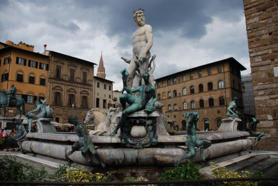 Обои Памятник на фоне зданий во Флоренции, Италия