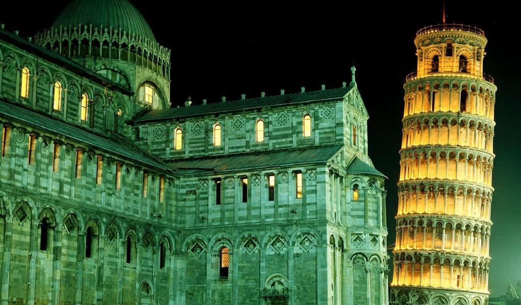 Обои Ночная подсветка собора и башни в Пизе, Италия
