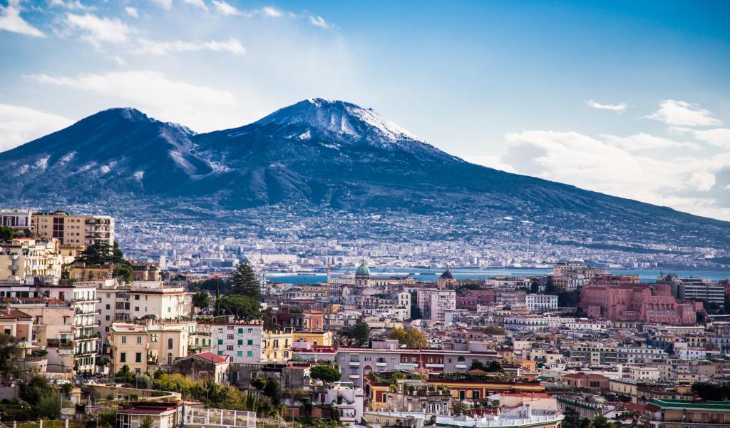 Обои Город у подножия горы в Неаполе, Италия