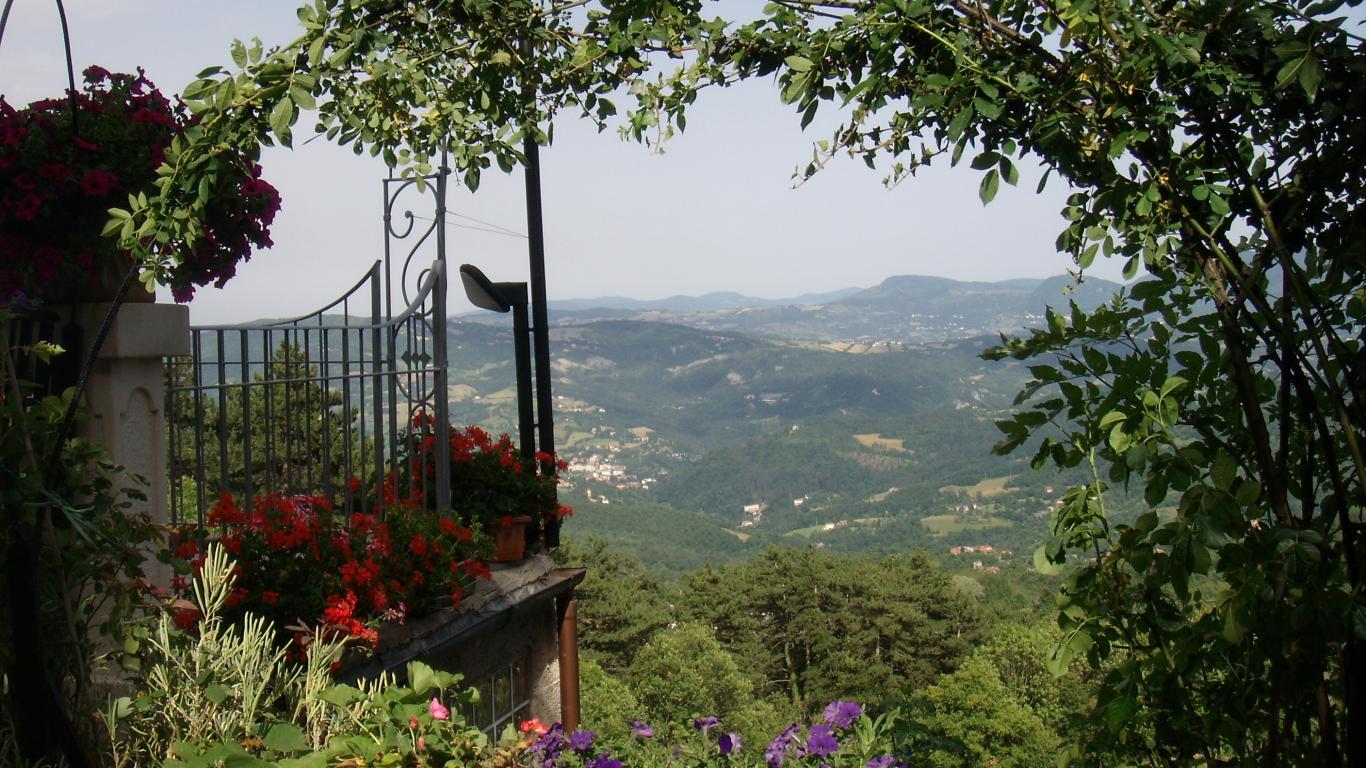 Обои Сад с видом на горы на курорте в Монтекатини Терме, Италия