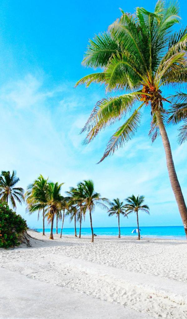 Обои Пальмы на пляже на курорте Кайо Энсеначос, Куба