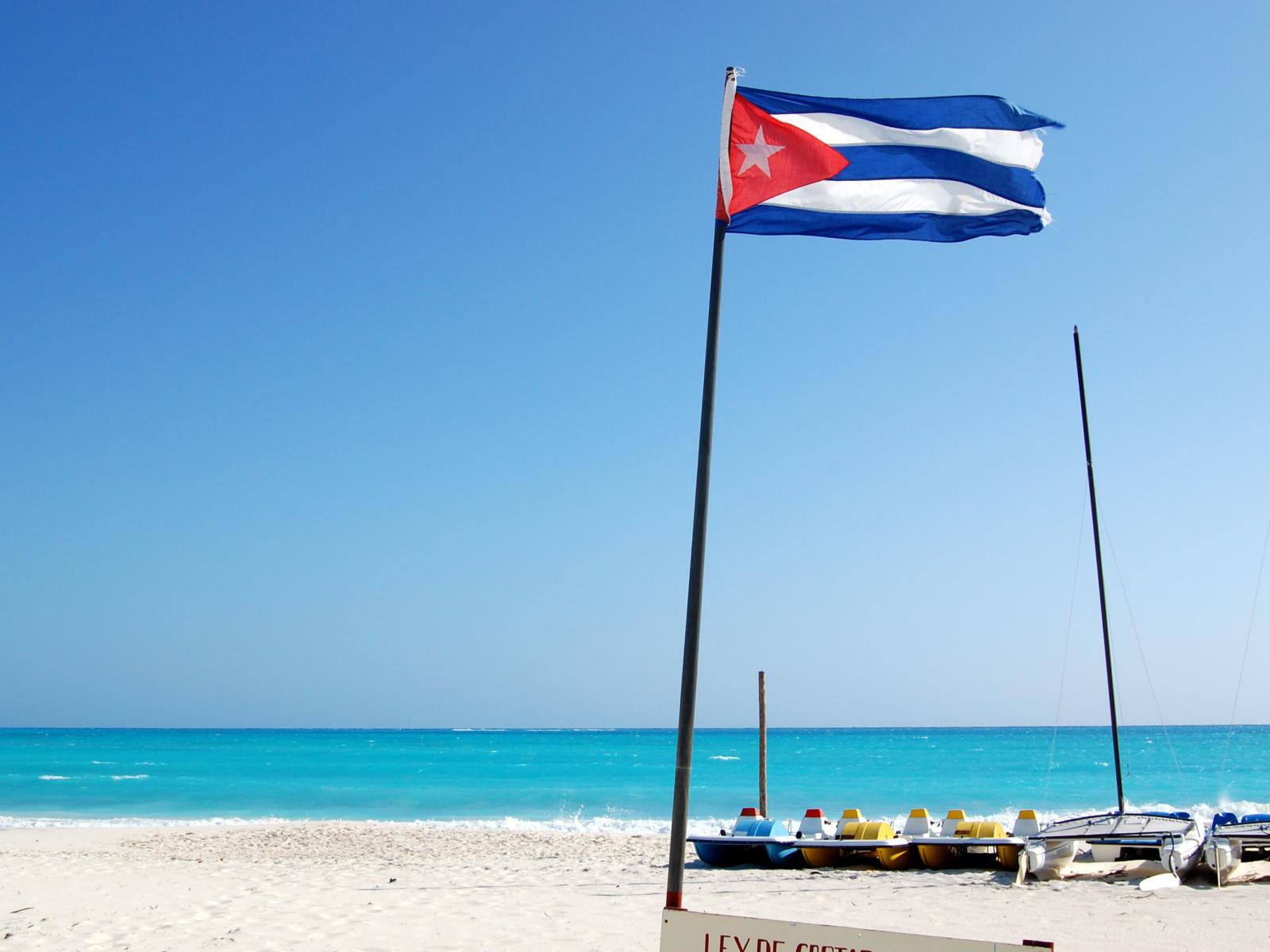 Обои Флаг Кубы на пляже на курорте Кайо Ларго, Куба