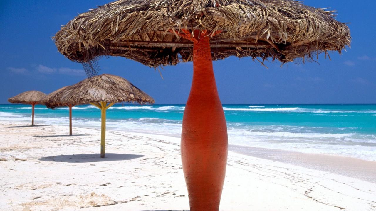 Обои Пляжные зонтики на курорте Кайо Ларго, Куба