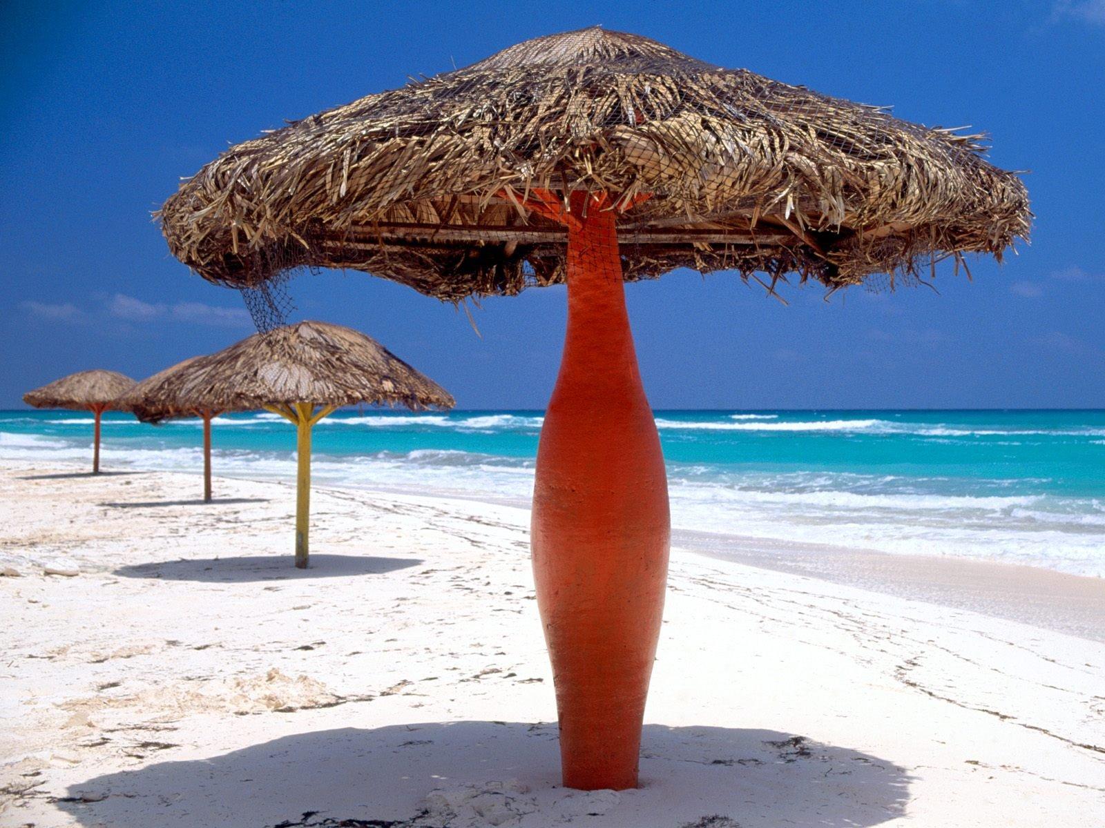 Обои Пляжные зонтики на курорте Кайо Ларго, Куба
