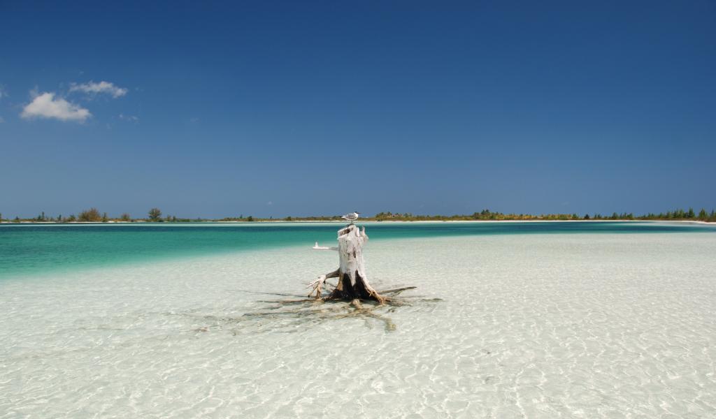 Обои Корень дерева на пляже на курорте Кайо Ларго, Куба