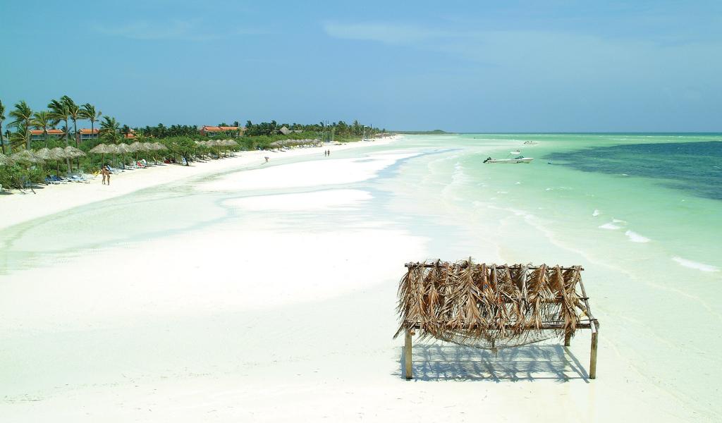 Обои Белый песок на пляже на курорте Кайо Гильермо, Куба