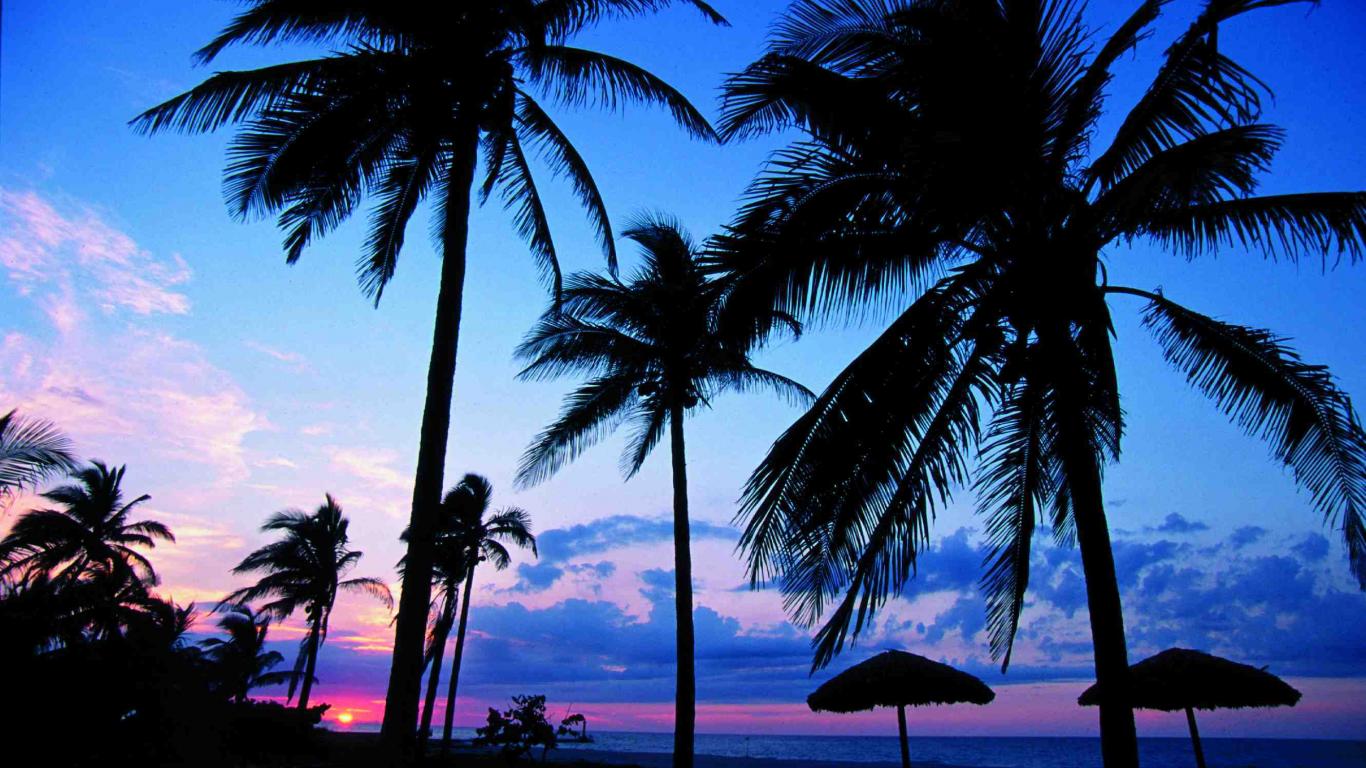 Обои Пальмы на фоне заката на курорте Гуардалавака, Куба