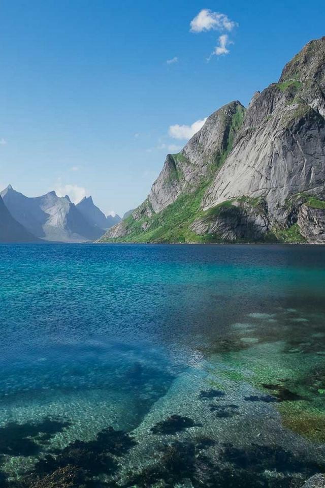 Обои Голубая вода на Лофотенских островах, Норвегия