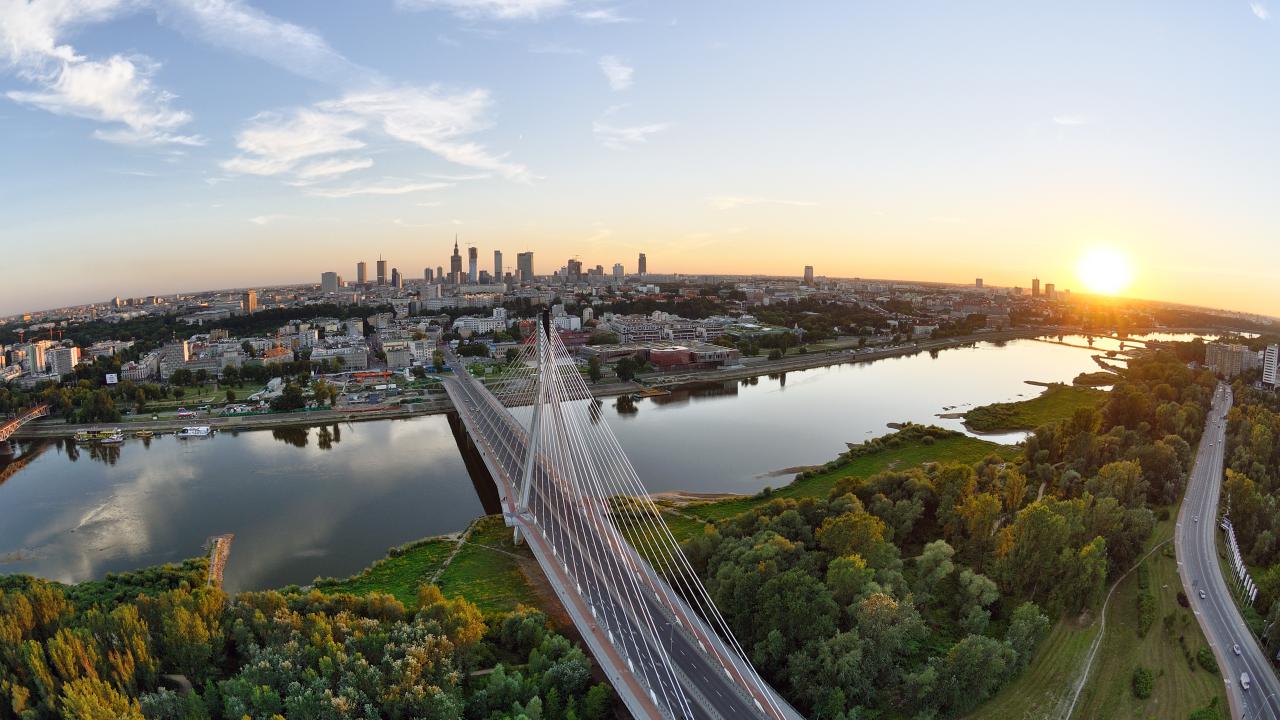 Обои Летний закат над Варшавой, Польша