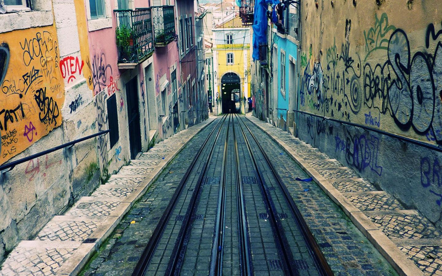 Обои Узкая улочка в Лиссабоне
