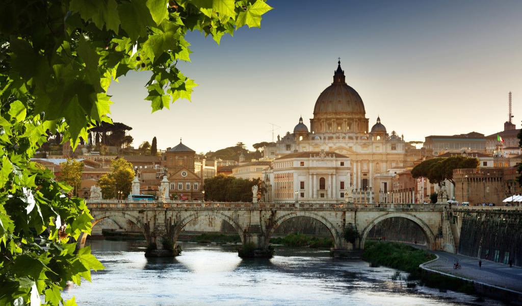 Обои Старый город, Листья, Мост, храм