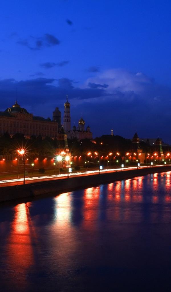 Обои Ночная набережная у Кремля