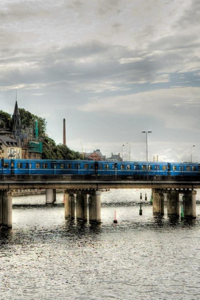 Обои Поезд пересекает мост над рекой в Швеции