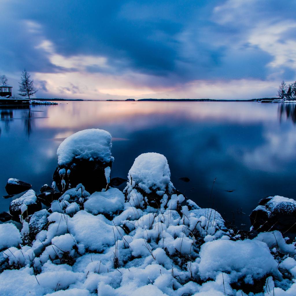 Обои Снег, Озеро, Успокаивающие