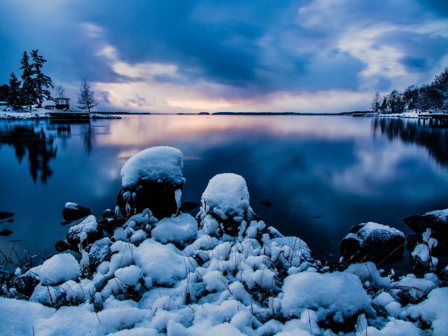 Обои Снег, Пейзаж, Озеро, Успокаивающие