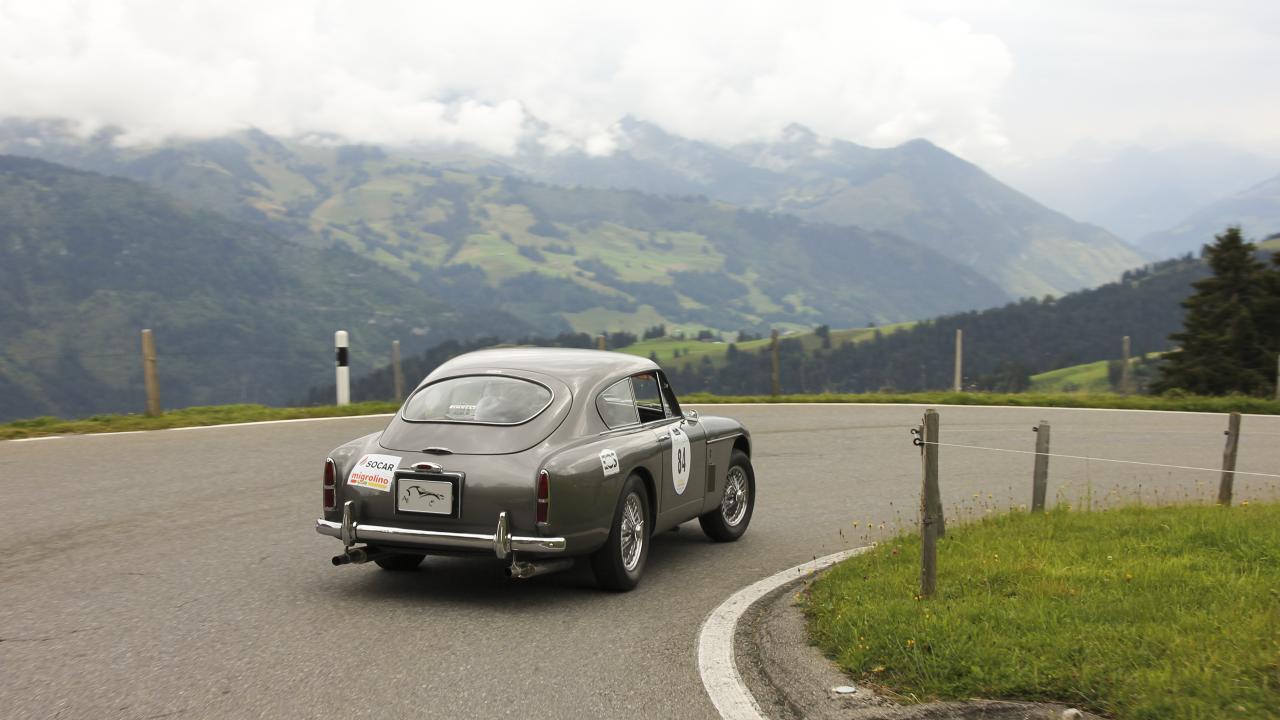 Обои Ретро автомобиль на горной дороге в Швейцарии