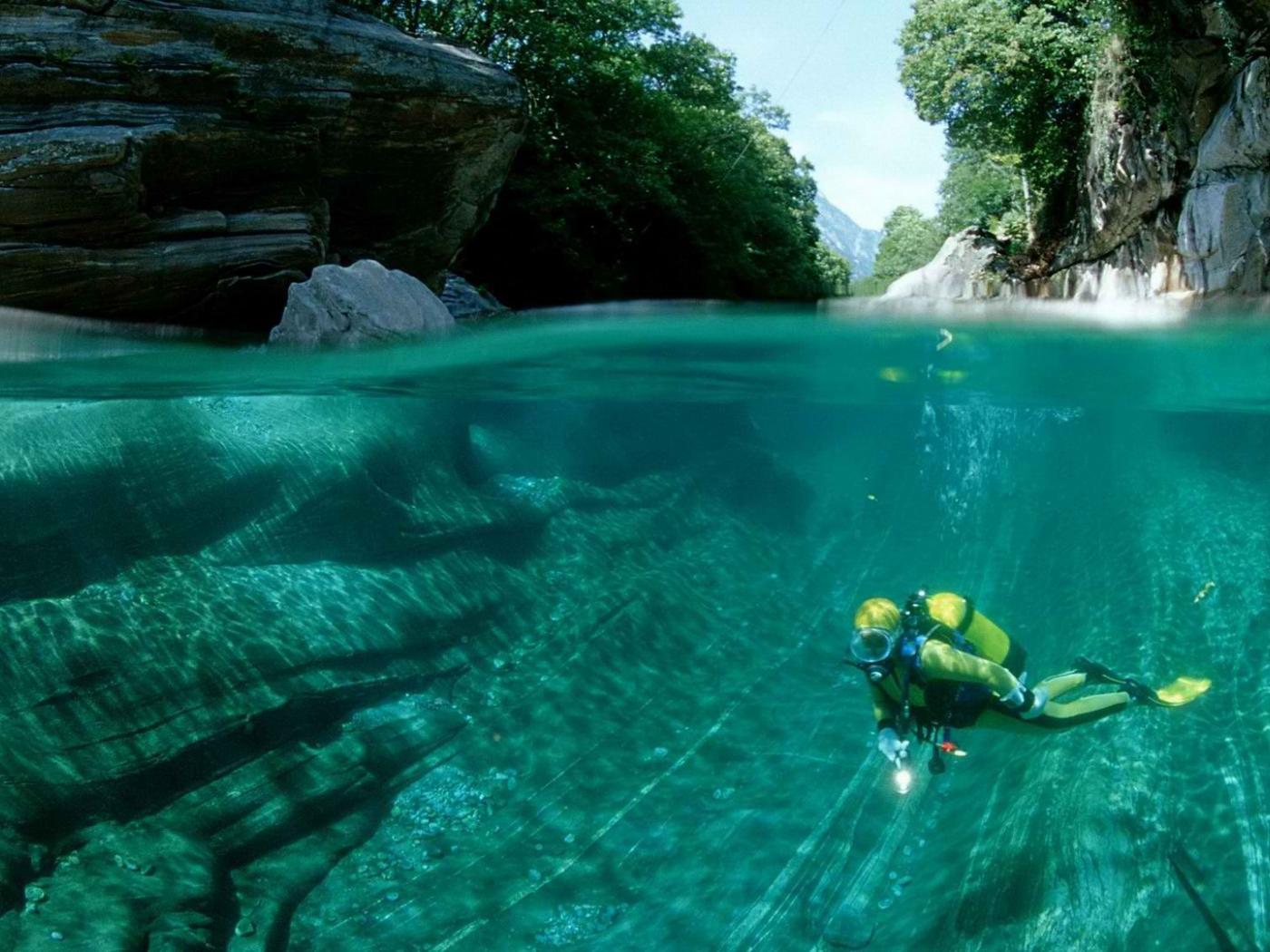 Обои Подводный пловец в Швейцарии