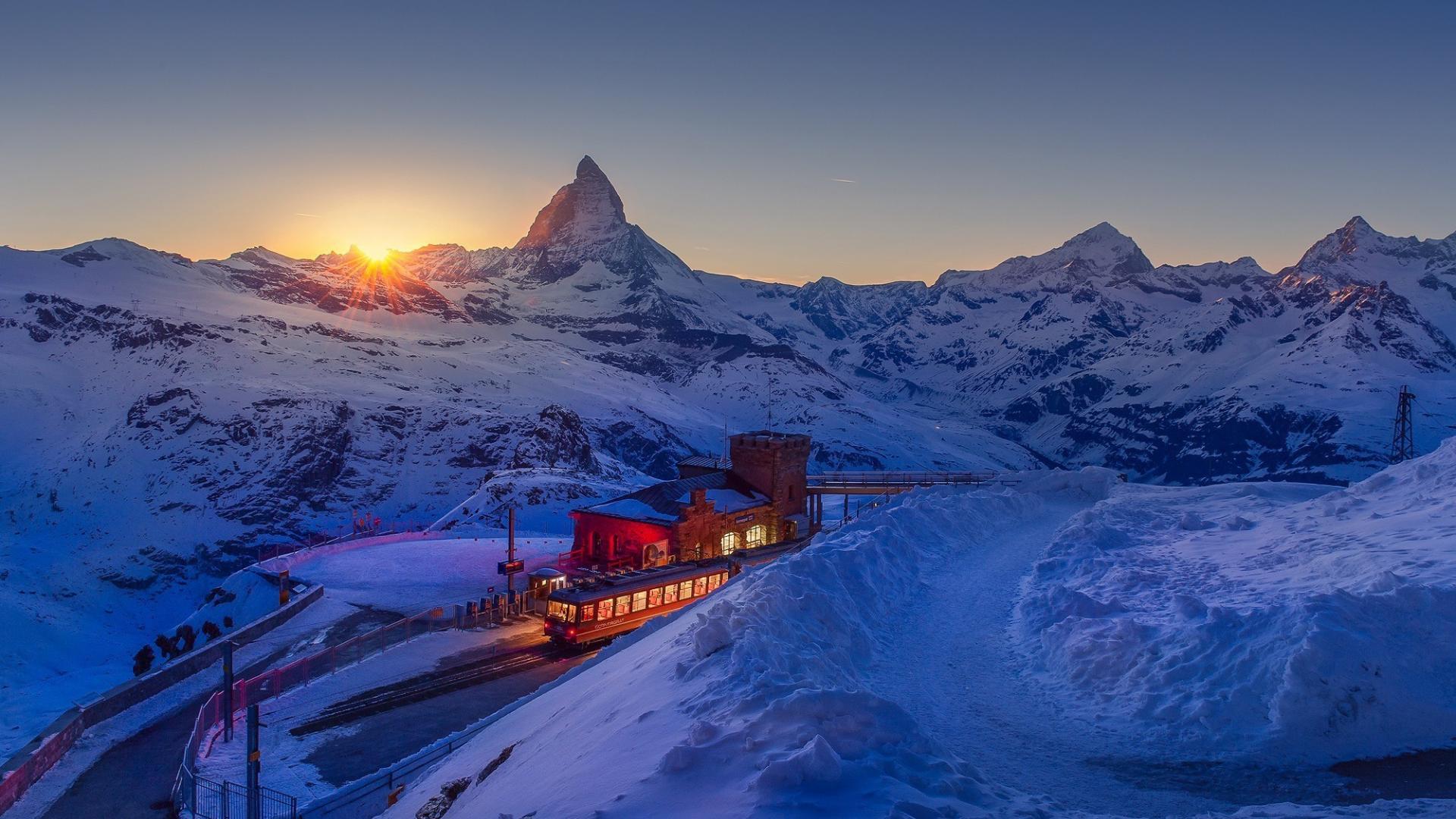 Обои Железнодорожная станция в Швейцарии