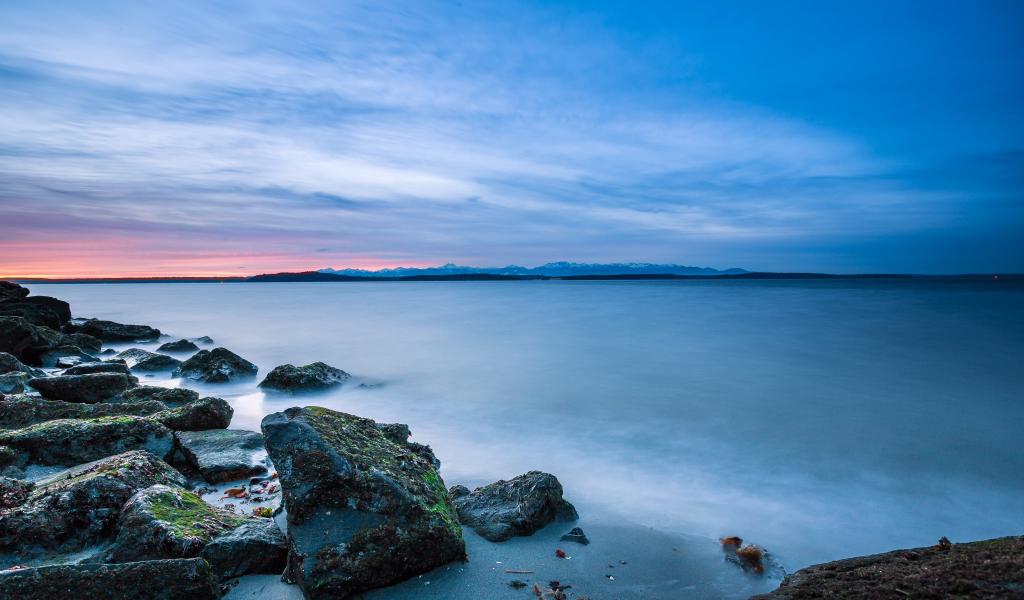 Обои Закат солнца на пляже Алки в Западном Сиэтле, США