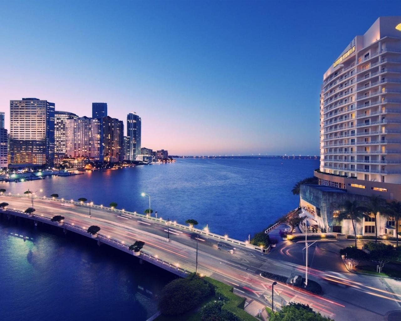 Обои Освещенный мост в Майами
