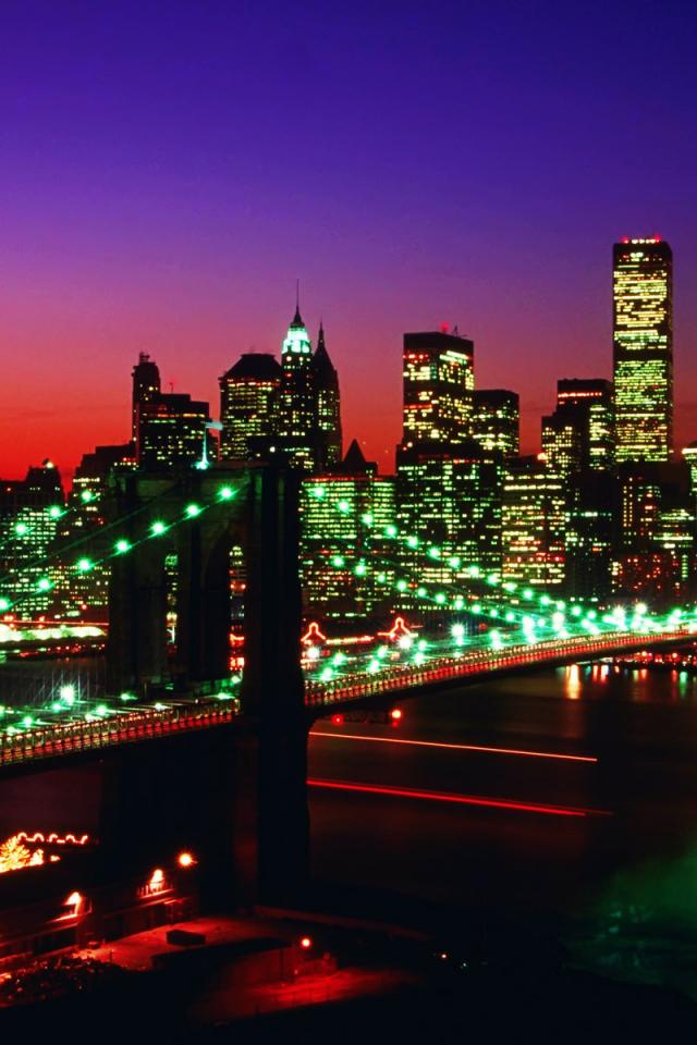 Обои Огни на мосту / Нью-Йорк / США