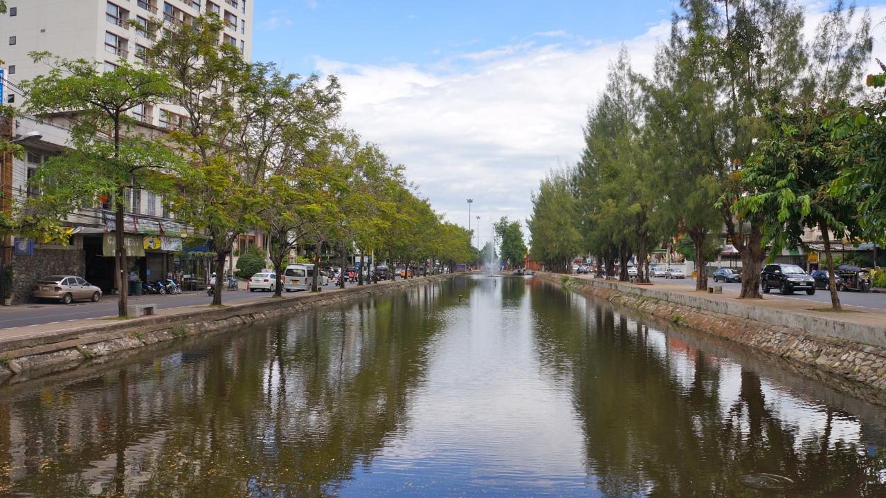Обои Канал в городе на курорте Чианг Рай, Таиланд
