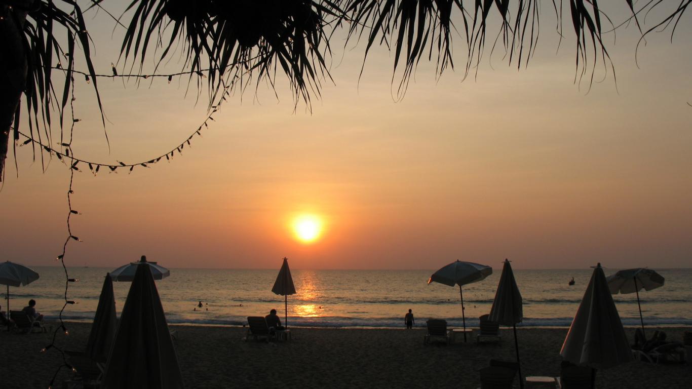 Обои Закат солнца на пляже на курорте Хуа Хин, Таиланд