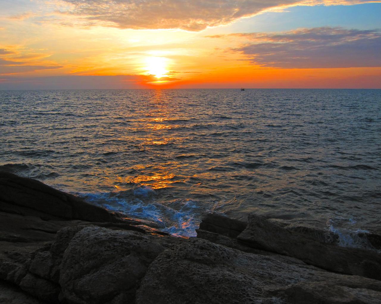 Обои Закат солнца на берегу на острове Самет, Таиланд