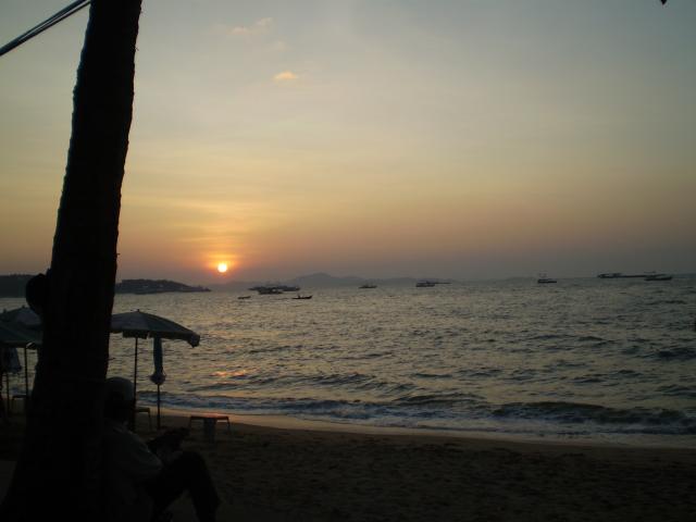 Обои Закат солнца на пляже на курорте в Паттайе, Таиланд