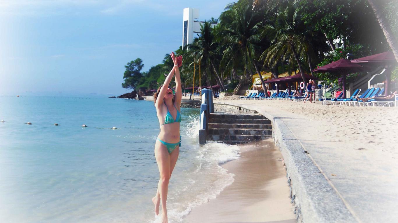 Обои Девушка на пляже Пратамнак на курорте в Паттайе, Таиланд