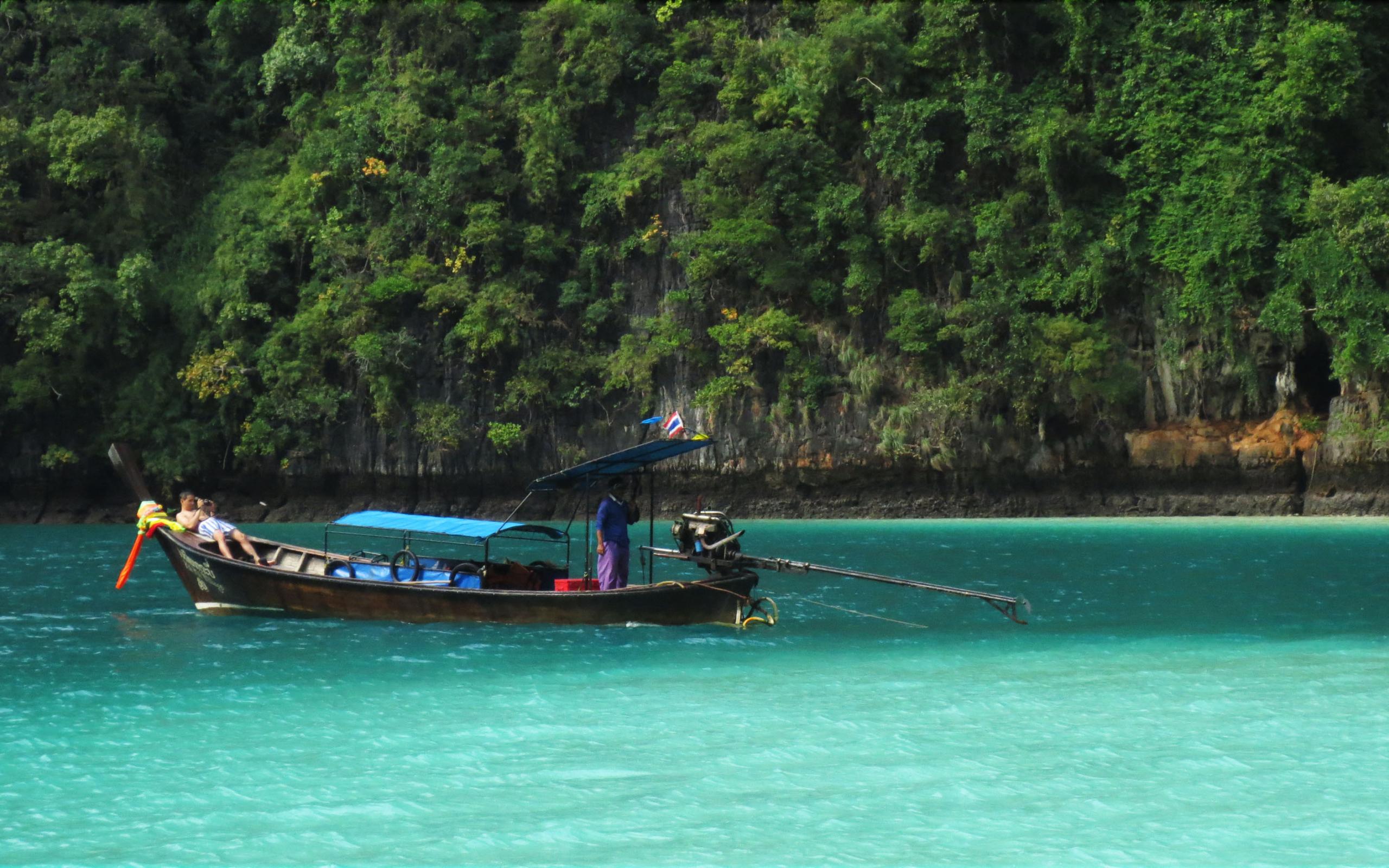 Обои Лодка у берега острова Панган, Таиланд