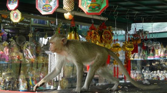 Обои Обезьяна на прилавке на курорте Лопбури, Таиланд