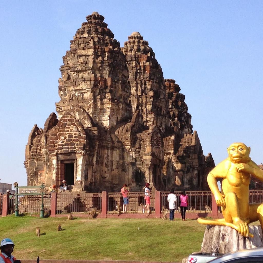 Обои Золотая обезьяна на фоне храма на курорте Лопбури, Таиланд