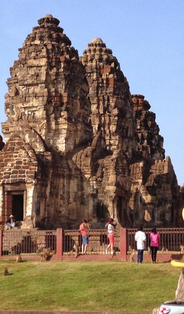 Обои Золотая обезьяна на фоне храма на курорте Лопбури, Таиланд