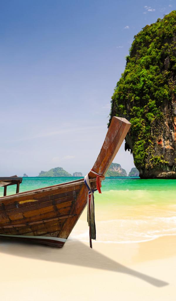 Обои Лодка на фоне скалы на курорте Краби, Таиланд
