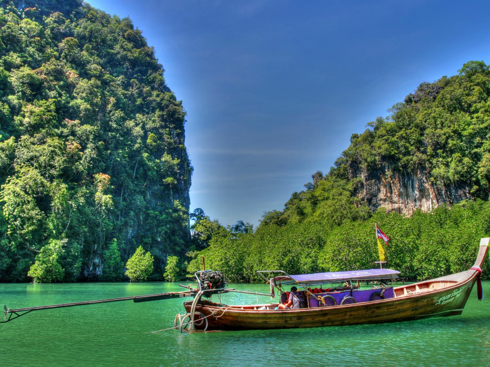 Обои Лодка в заливе на курорте Краби, Таиланд