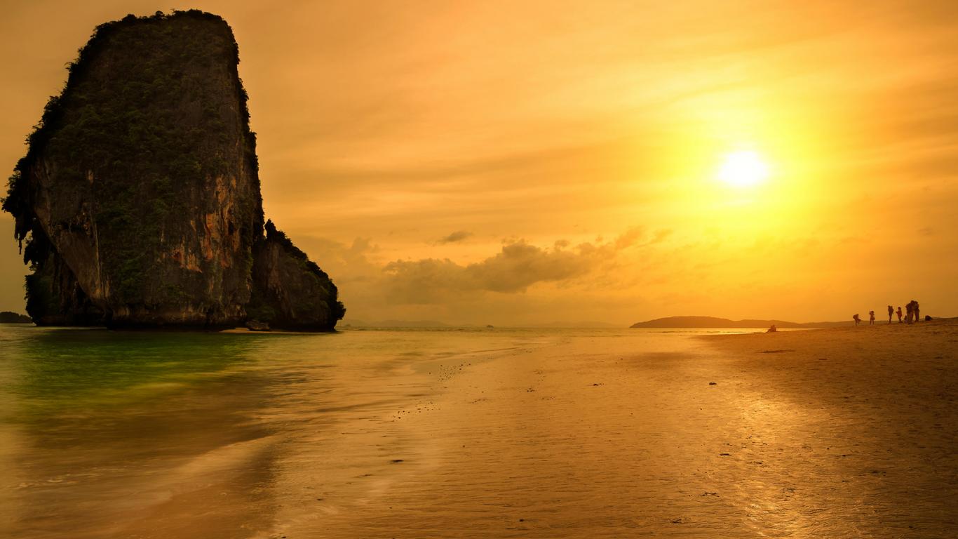 Обои Закат солнца на пляже на курорте Краби, Таиланд