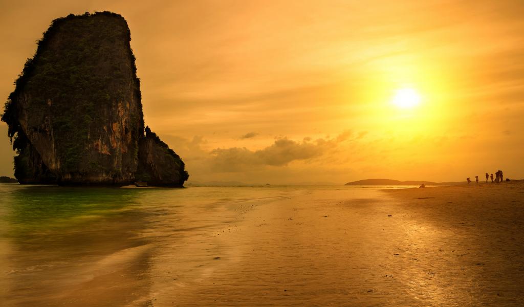 Обои Закат солнца на пляже на курорте Краби, Таиланд