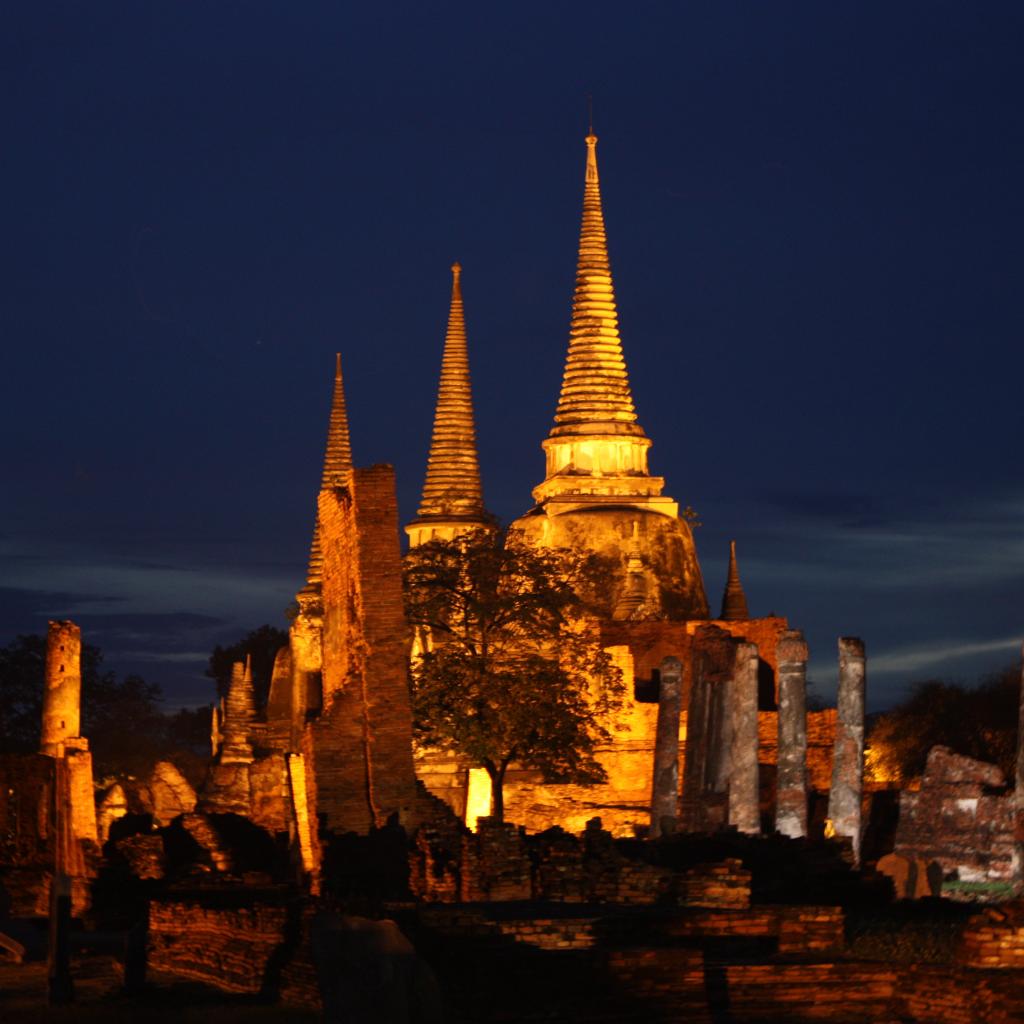 Обои Ночная подсветка храма на курорте Аютайя, Таиланд