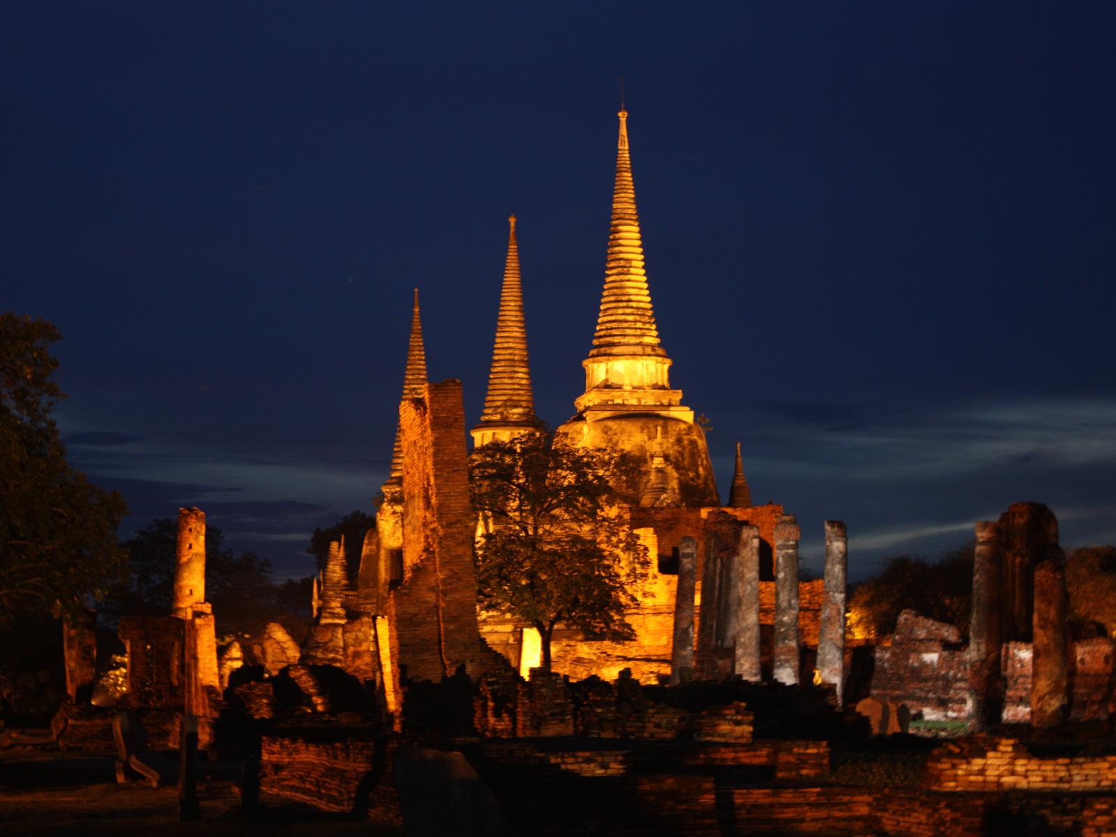 Обои Ночная подсветка храма на курорте Аютайя, Таиланд
