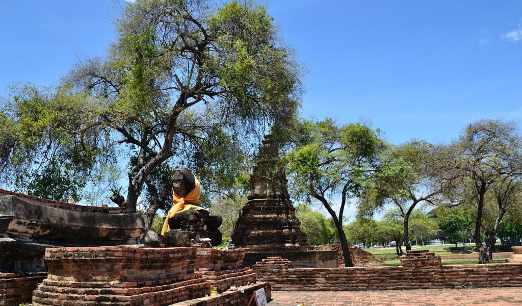 Обои Деревья среди развалин храма на курорте Аютайя, Таиланд
