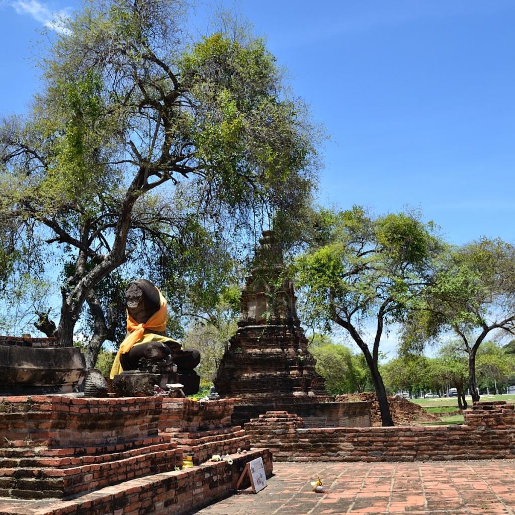 Обои Деревья среди развалин храма на курорте Аютайя, Таиланд
