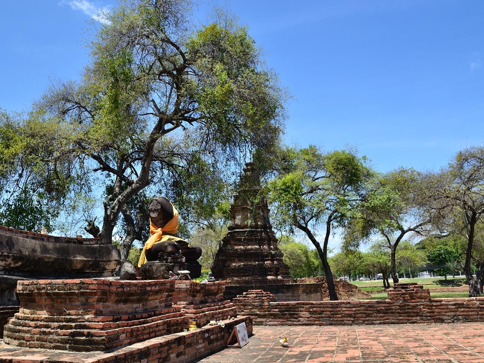 Обои Деревья среди развалин храма на курорте Аютайя, Таиланд