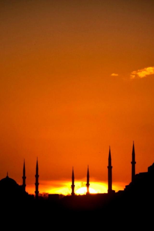 Обои Солнце скрылось за храмами в Стамбуле
