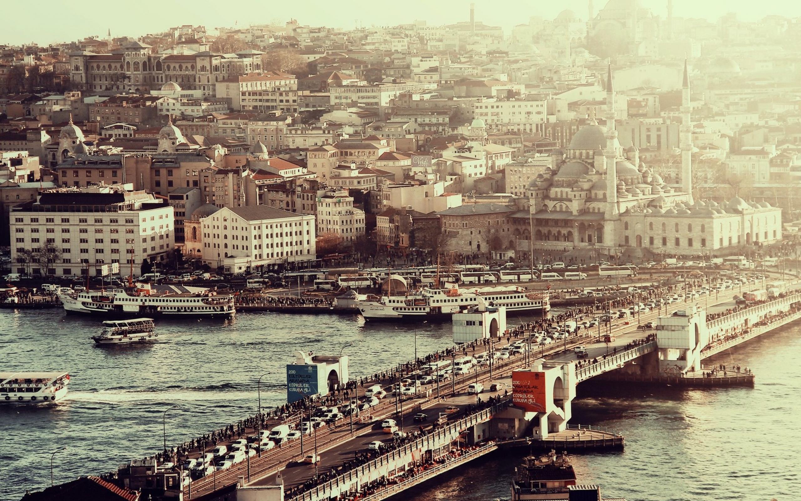 Обои Загруженный мост в Стамбуле