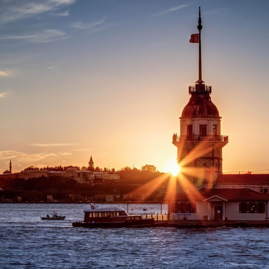 Обои Предзакатное солнце в Стамбуле