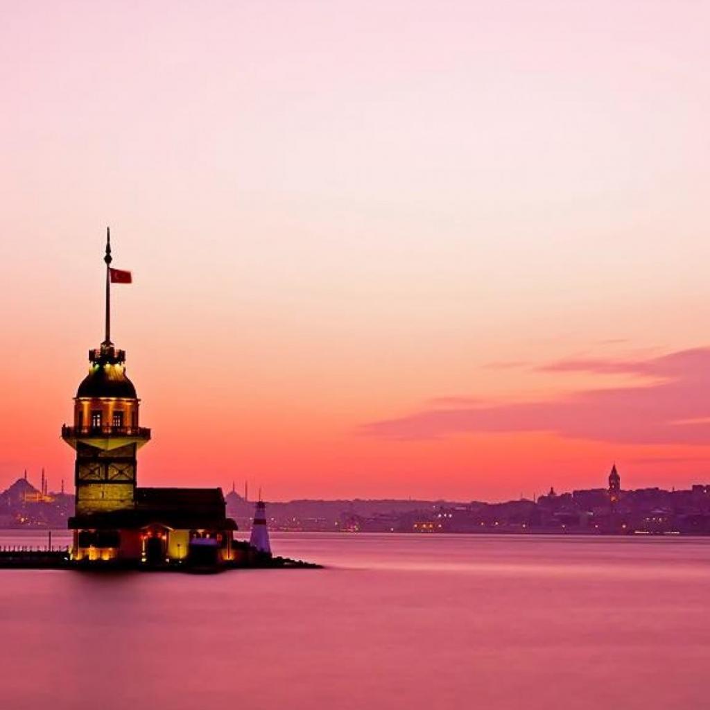 Обои Розовый закат в Стамбуле