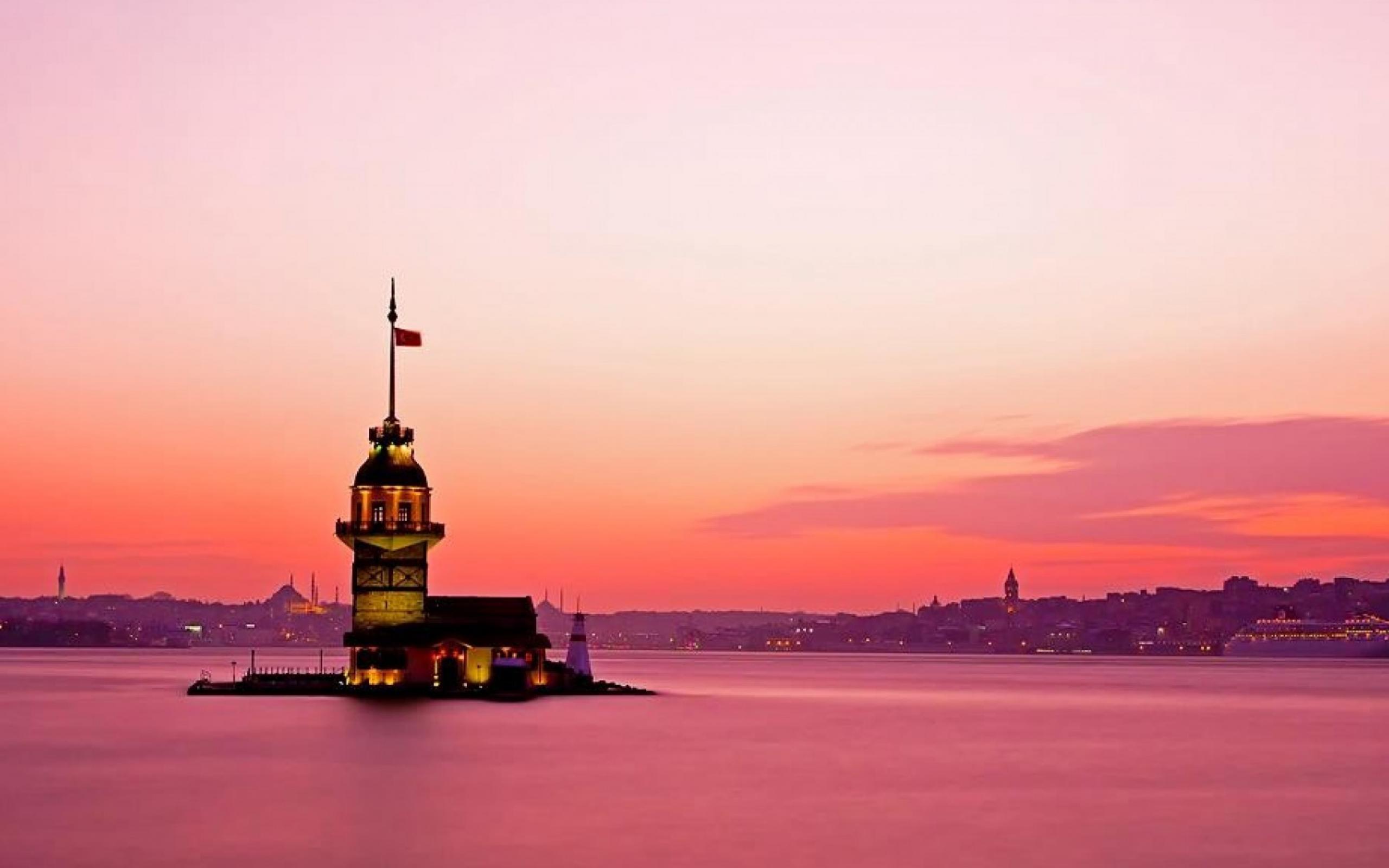 Обои Розовый закат в Стамбуле